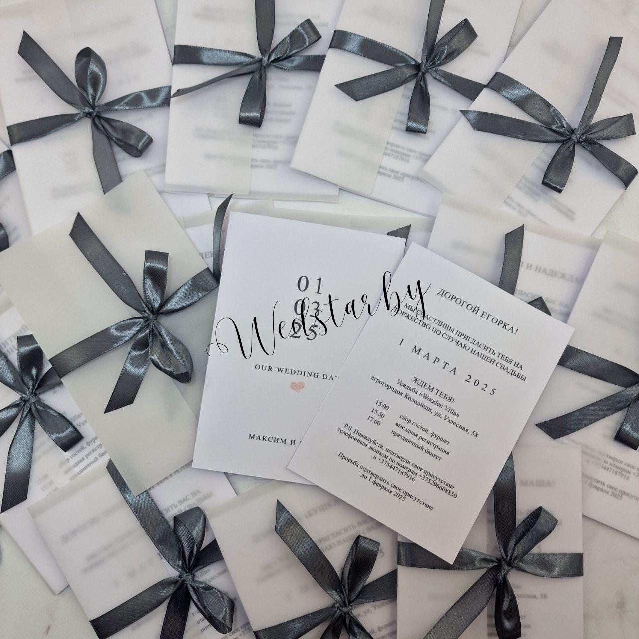 Двухсторонние пригласительные с обложкой из кальки и бантом