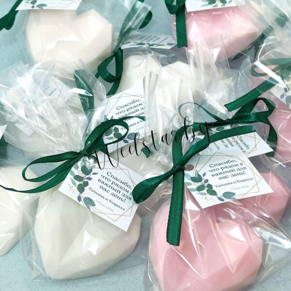 Ароматное свадебное мыло “Бархатная роза” – достойный подарок гостям в день вашей свадьбы. Мыло доступно к заказу в разных цветах.