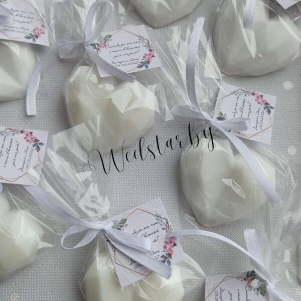 Ароматное свадебное мыло “Граненое сердце” – достойный подарок гостям в день вашей свадьбы. Мыло доступно к заказу в разных цветах.