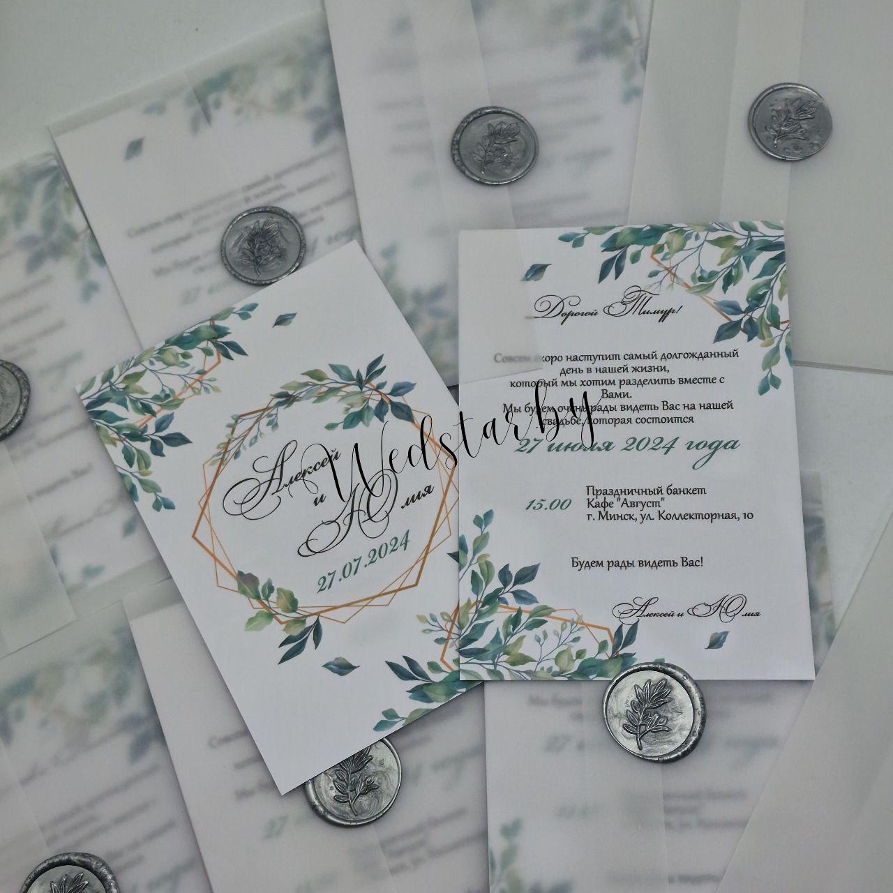 Двухсторонние пригласительные с обложкой из кальки и оттиском