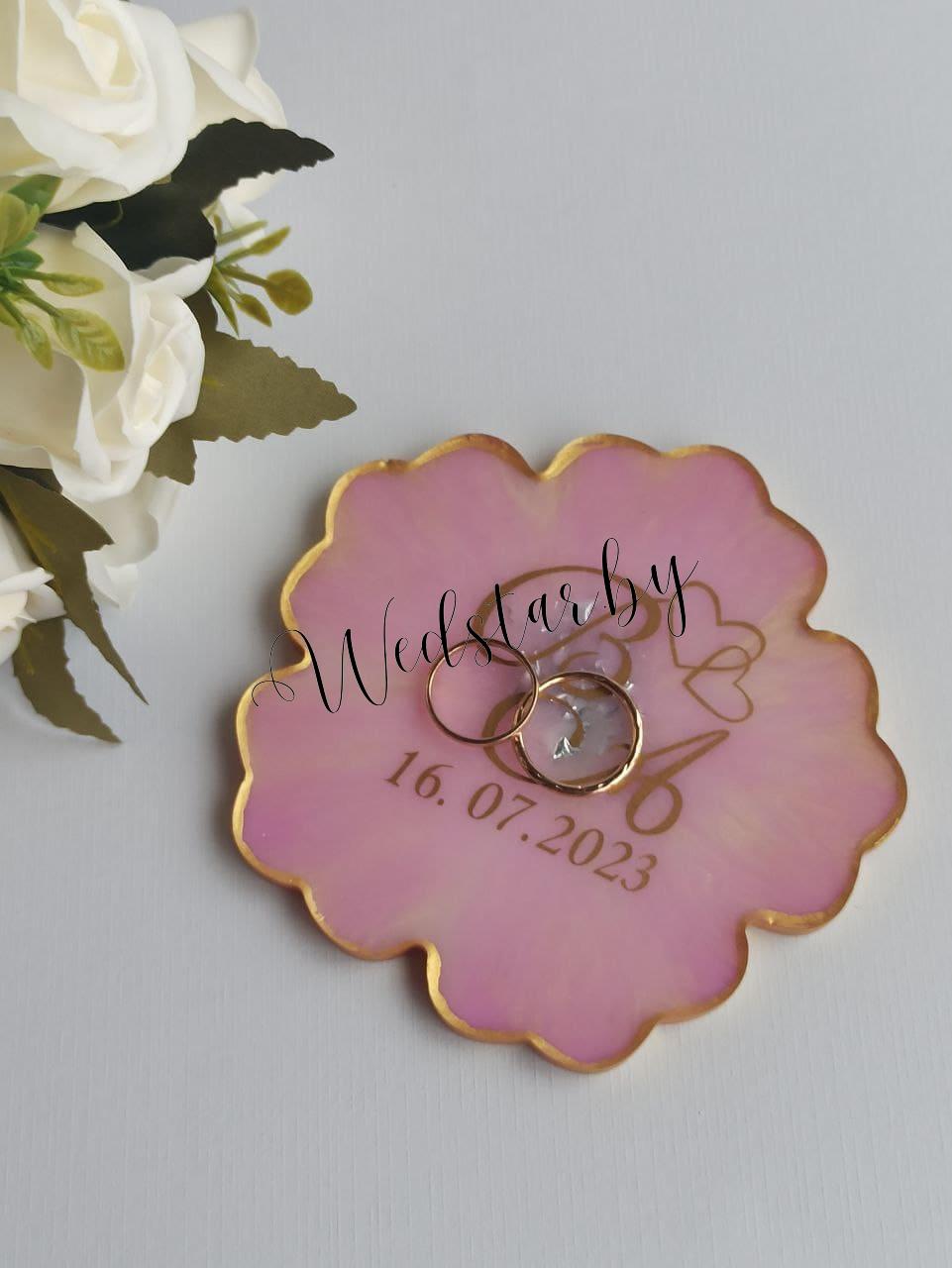 Именная подставка для колец из эпоксидной смолы. Цвет надписей на выбор