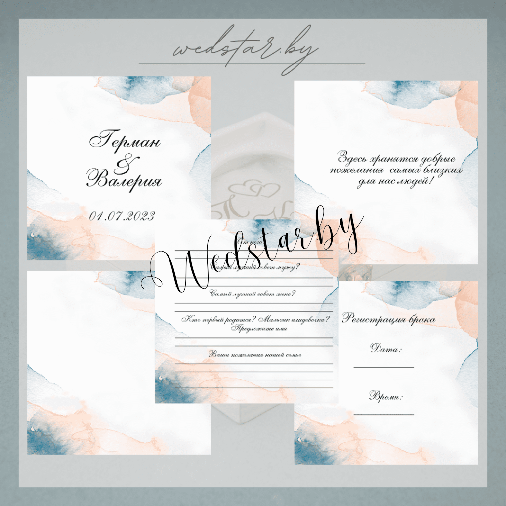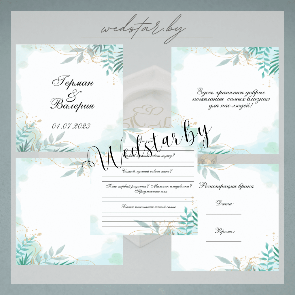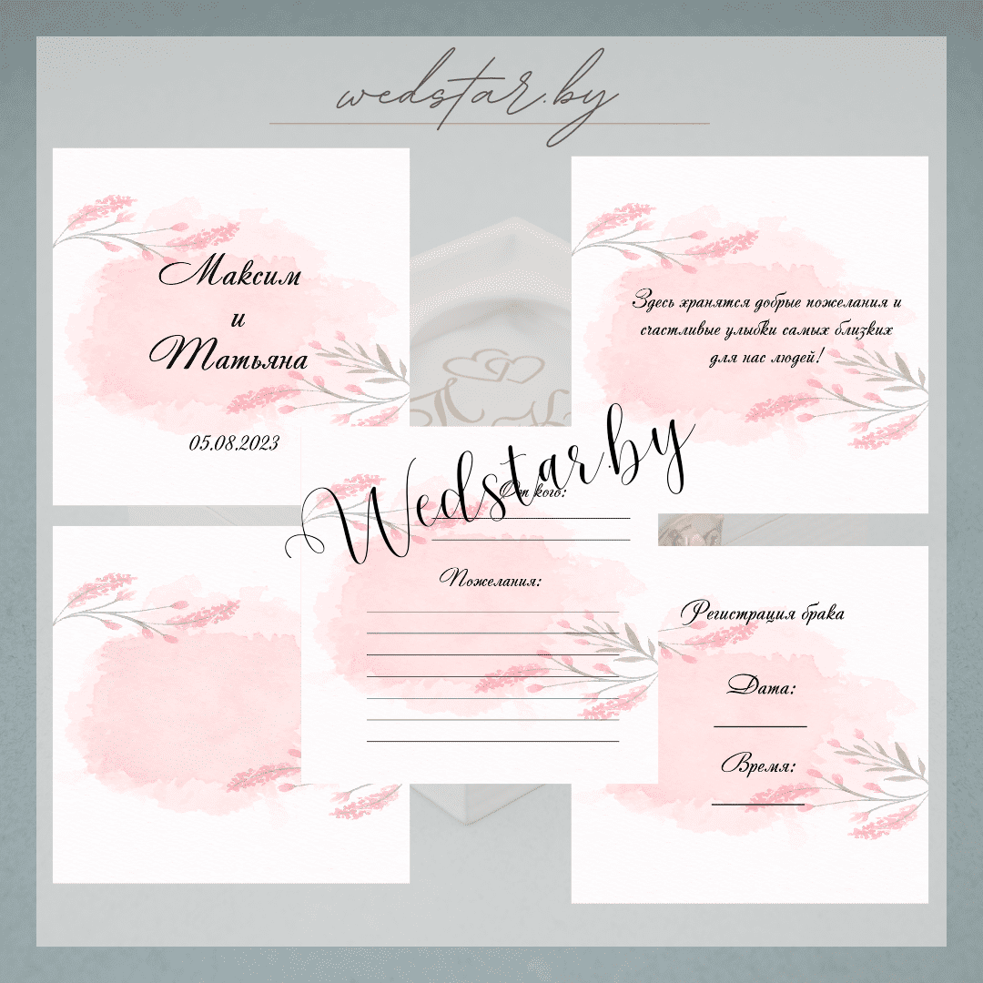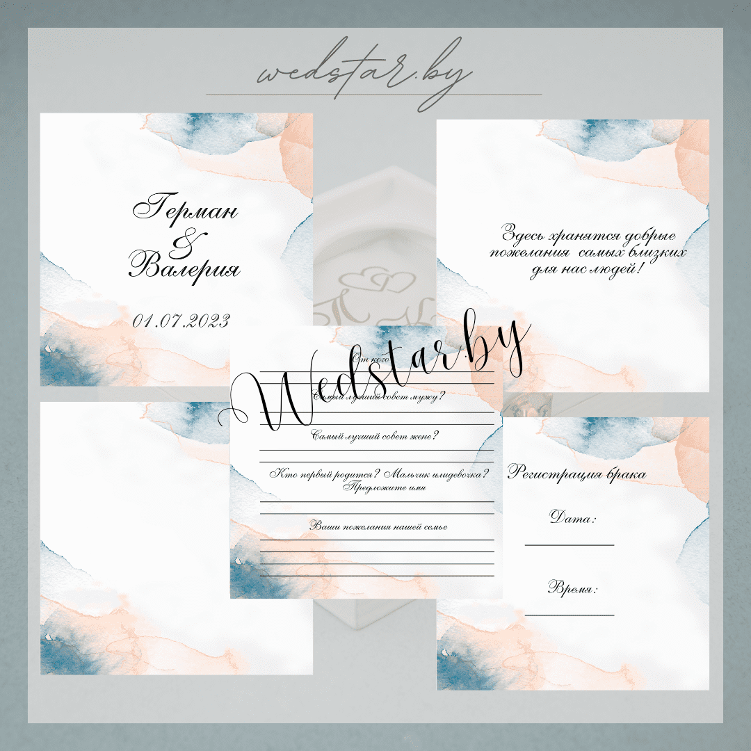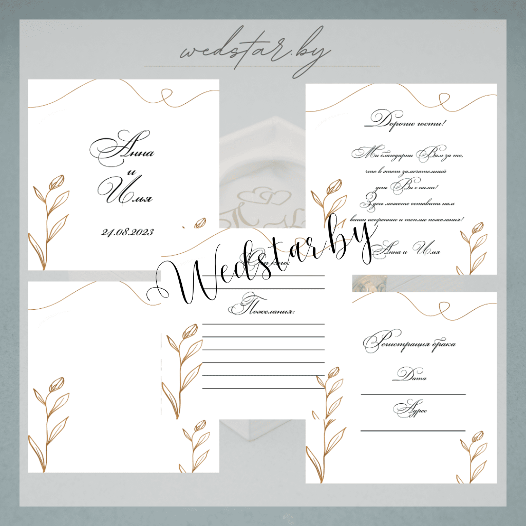 Макеты книг пожеланий Текст, шрифт макетов согласовывается индивидуально с каждой невестой. К заказу доступно 2 вида книг: с обложкой из оргстекла и без обложкиКоличество страниц в книге – 25 стр.Цвет надписей на обложке оргстекла на выбор: белые, черные, золото, сереброКнига пожеланий может быть в одном стиле с пригласительными. Варианты надписей на обложке из оргстекла
