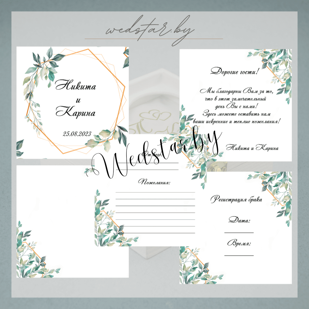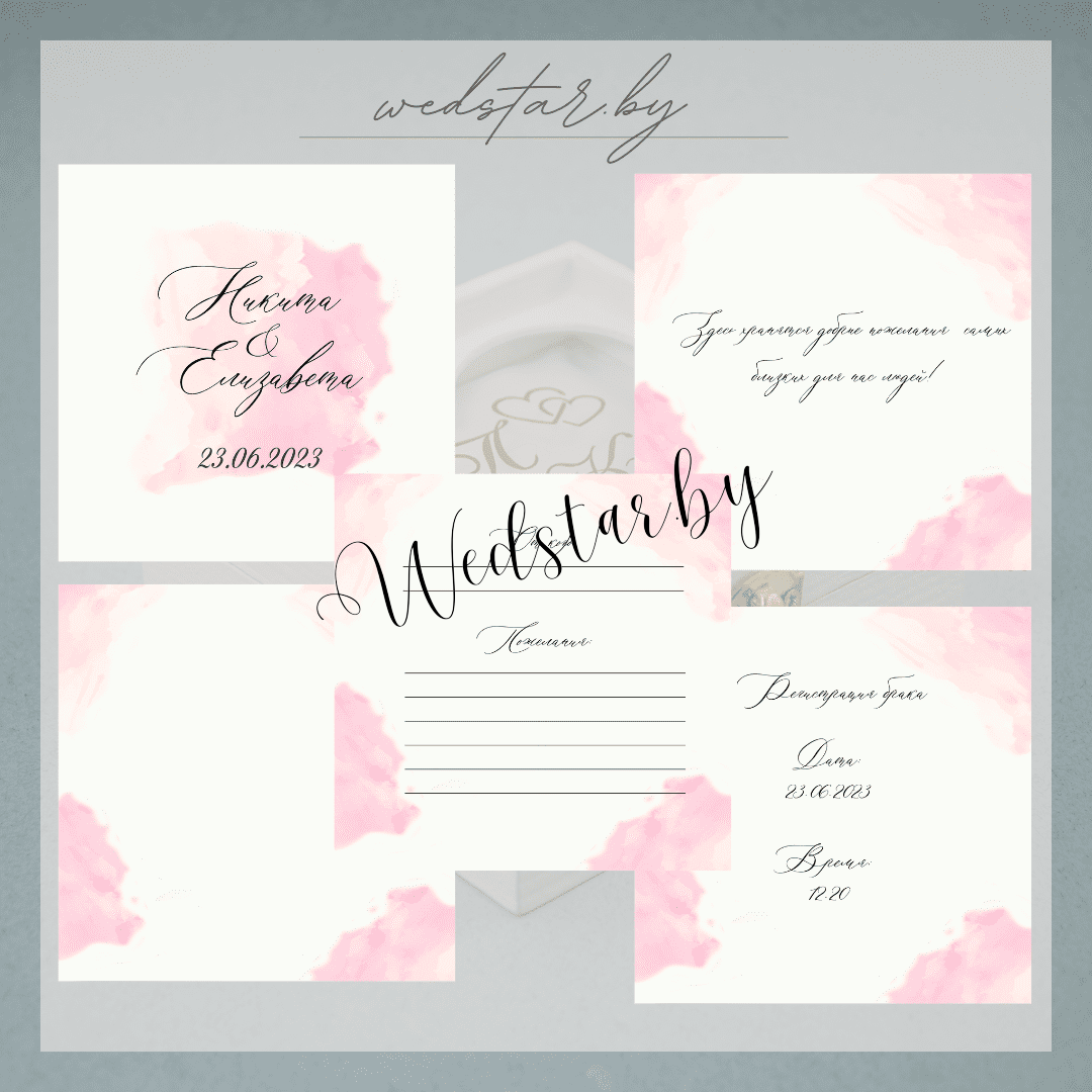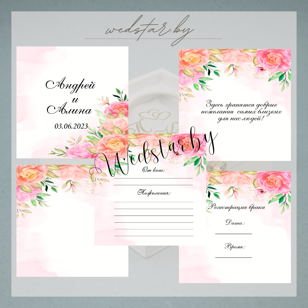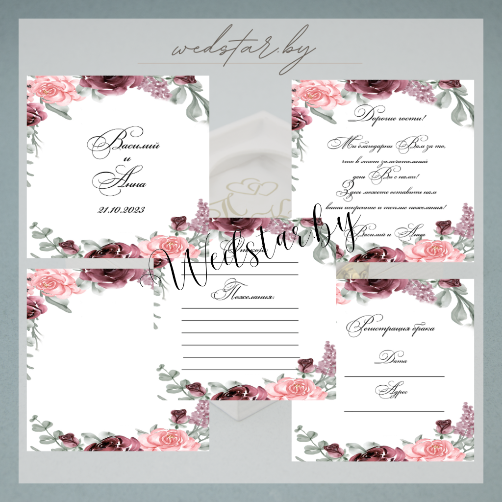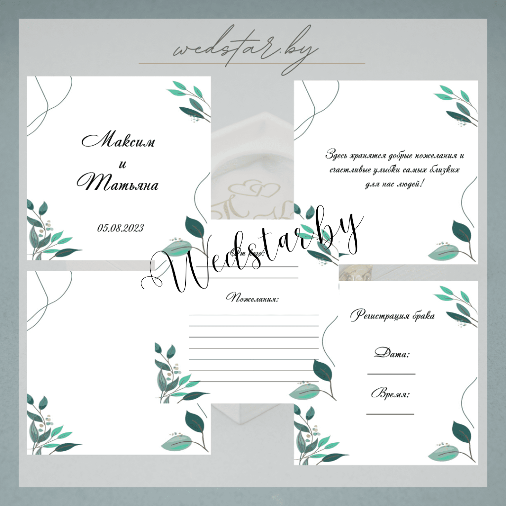Макеты книг пожеланий Текст, шрифт макетов согласовывается индивидуально с каждой невестой. К заказу доступно 2 вида книг: с обложкой из оргстекла и без обложкиКоличество страниц в книге – 25 стр.Цвет надписей на обложке оргстекла на выбор: белые, черные, золото, сереброКнига пожеланий может быть в одном стиле с пригласительными. Варианты надписей на обложке из оргстекла